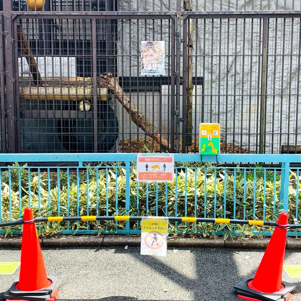 動物へのコロナ感染予防目的に、檻から離れるようにバリケードが設けられていました